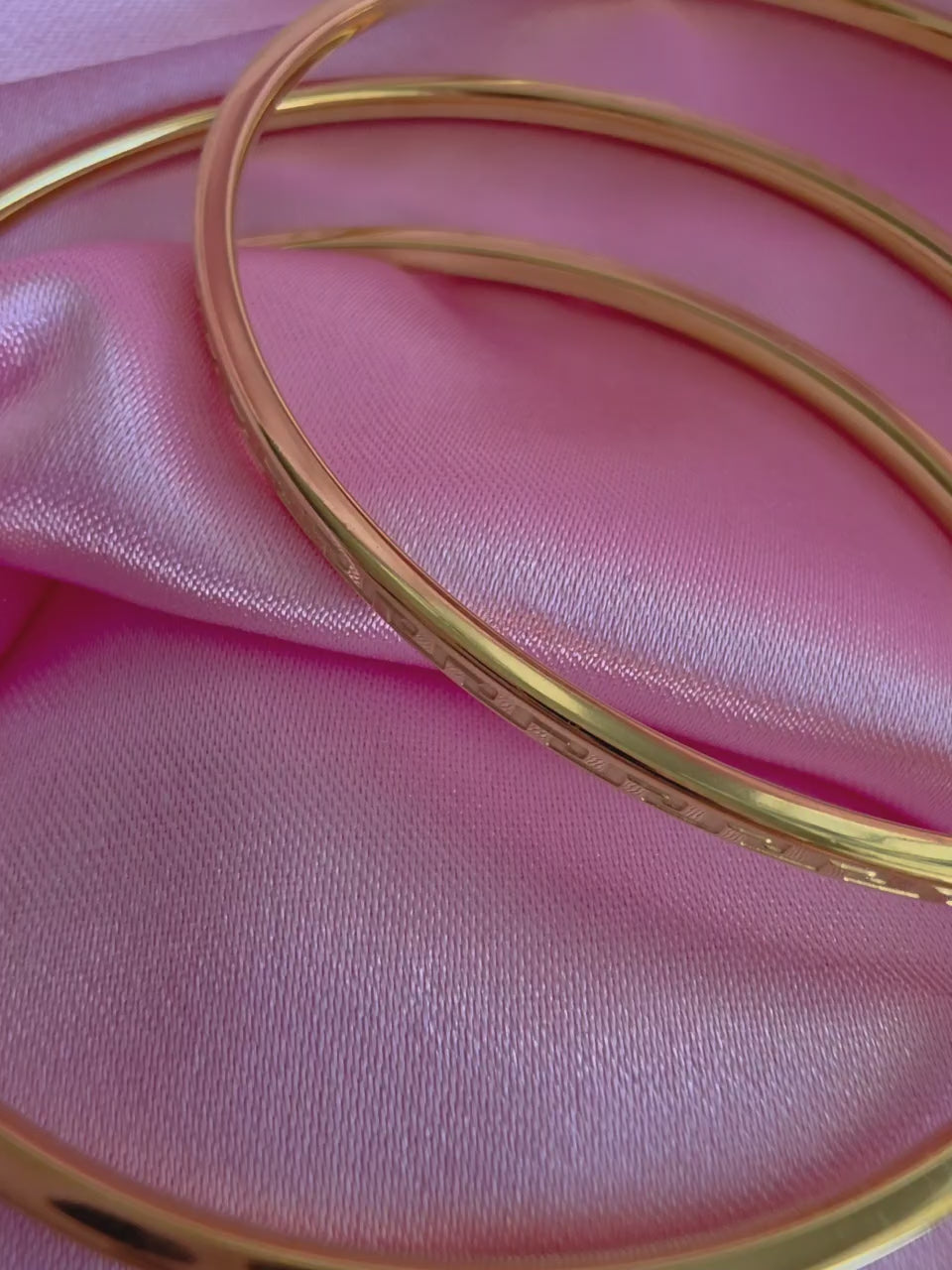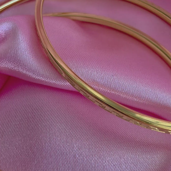 Inspirado en el icónico patrón de la "Greca" o "Llave Griega", este diseño es un antiguo símbolo de eternidad e infinito. Cada pulsera rígida está meticulosamente grabada con este patrón atemporal en un lujoso tono dorado.