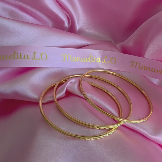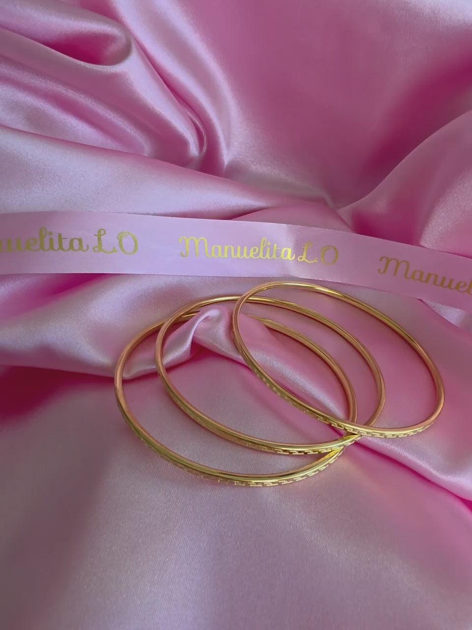 Incluye: Set de tres (3) pulseras rígidas con grabado de greca.